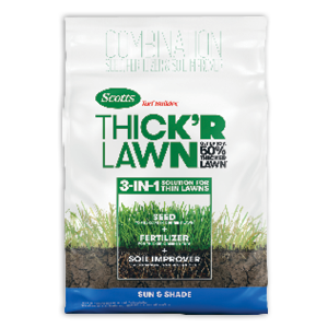 Scotts® Turf Builder® THICK'R Lawn™ Sun and Shade has everything you need to help turn weak, thin grass into a thick, green lawn. With this 3-in-1 solution get up to a 50% thicker lawn with just one application.